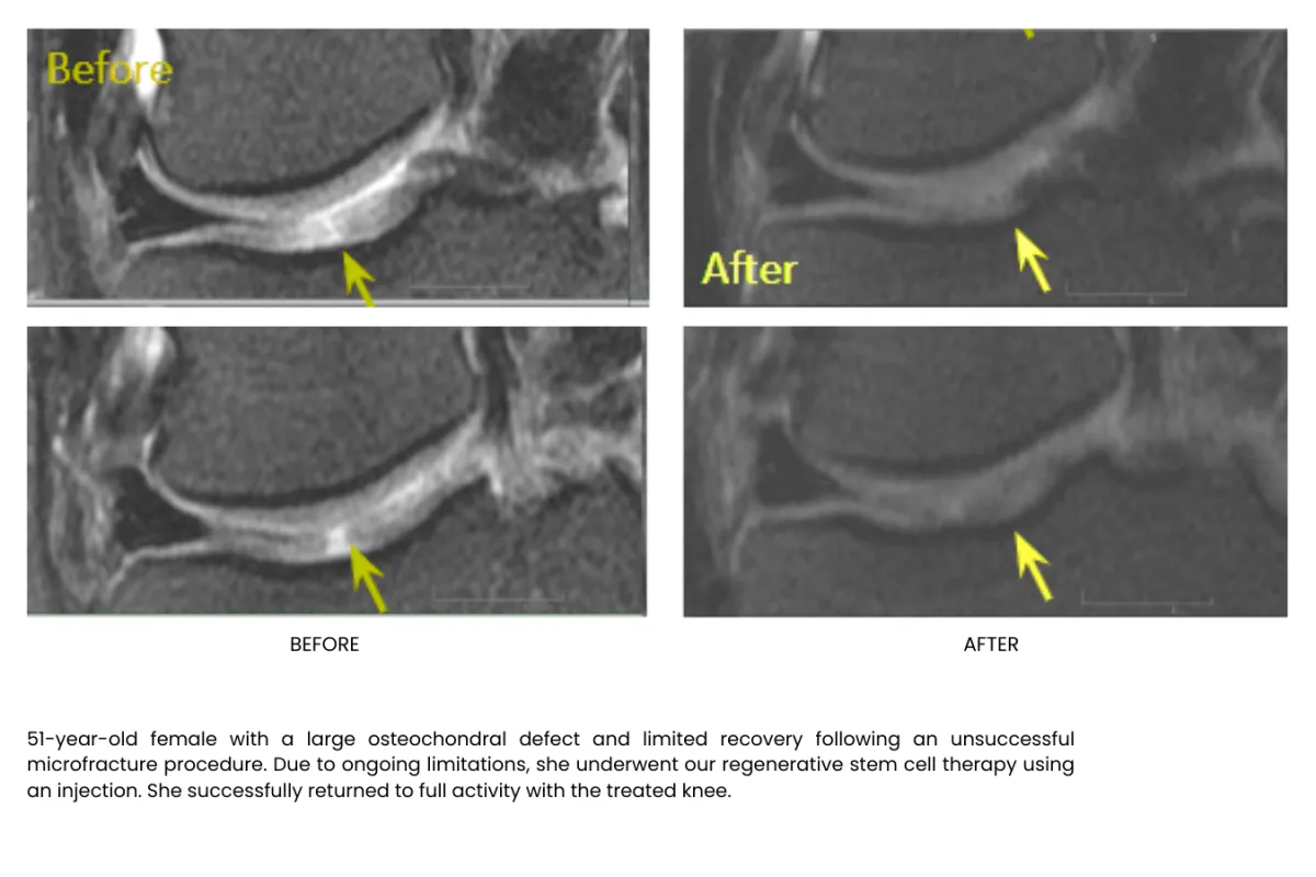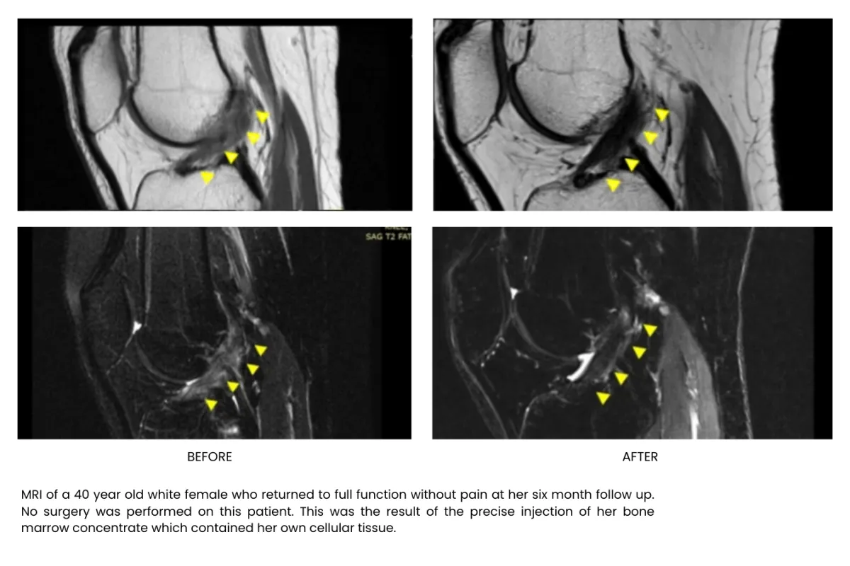 Millions of stem cells delivered precisely in the injured area building up tissue, recovering and freeing your from pain, without surgery or long recoveries.